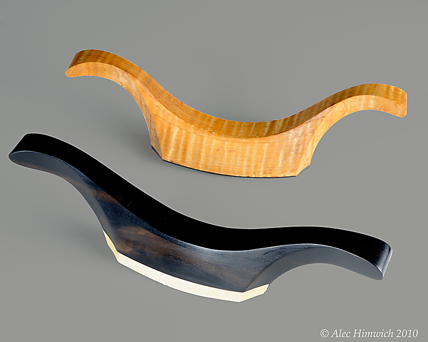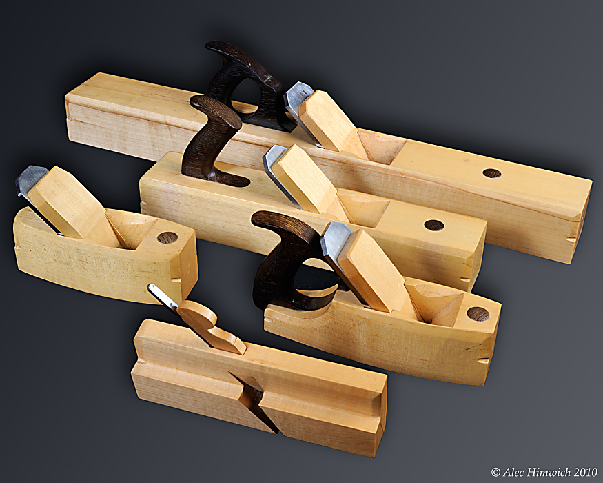 These are chairmaker’s travishers of ebony and holly (foreground), quilted maple and rosewood (background).